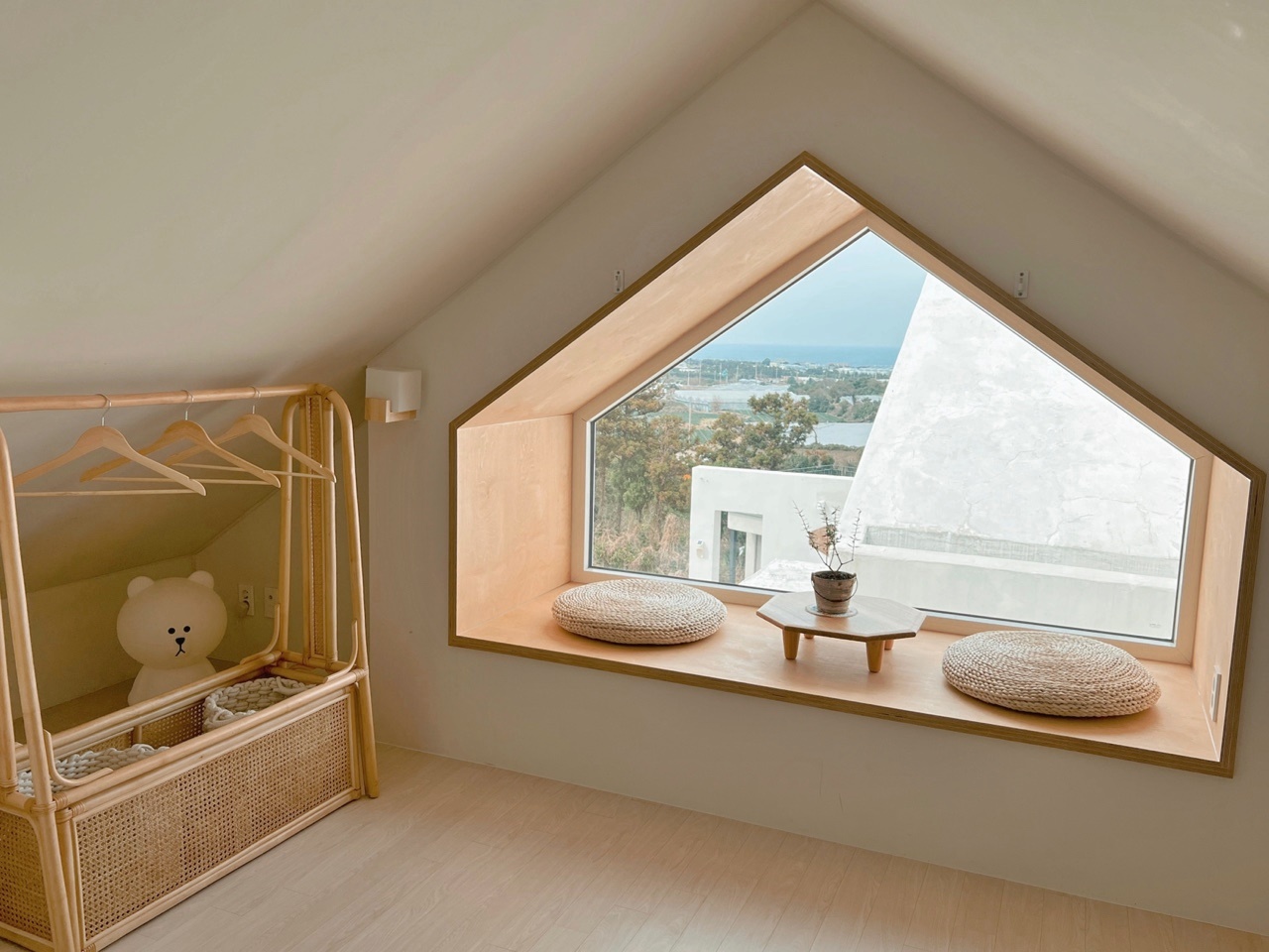 층마다 독립적인 공간감이 있어 3대가 함께 와도 편하게 쉴 수 있습니다. 특히 2층 창문 너머로 보이는 감귤밭과 정원의 풍경은 “이게 제주 감성이지” 싶은 순간을 만들어줍니다.